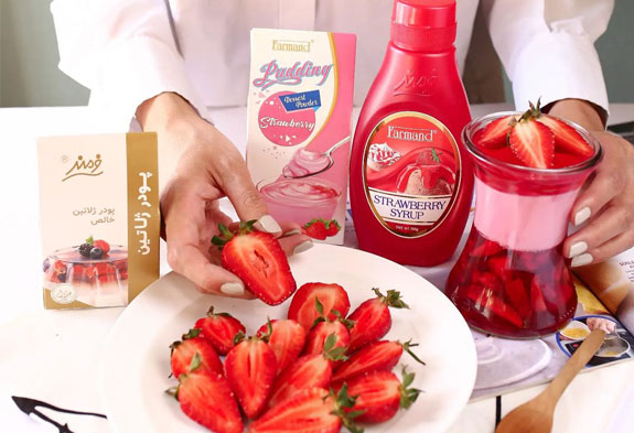 - پودینگ توت فرنگی فرمند: 1 بسته