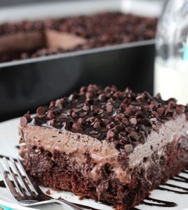 این کیک شکلاتی جزو کیکهای سوراخسوراخ محسوب میشود که در دههی هفتاد میلادی به محبوبیت زیادی دست پیدا کردند. در این دستورها بعد از پخت کیک روی آن را با یک سیخ چوبی سوراخ سوراخ میکنند و بعد با ریختن مایع دلخواهی که به خورد کیک برود، رطوبت و طعم کیک را از این رو به آن رو میکنند. کیکهای سوراخسوراخ به خاطر تنوع، راحتی و طعم لذیذشان در سالهای اخیر دوباره به محبوبیت رسیدهاند. پیش از این هم دستور کیک ژلهای را برایتان گفتیم که ژلهی توتفرنگی روی کیک سفید ساده اضافه میشد. این یکی دستور، کیک شکلاتی راحت و خوشمزهای است که با دوتا از پرطرفدارترین محصولات فرمند در آشپزی آماده میشود: پودر کاکائو و سس شکلات.
